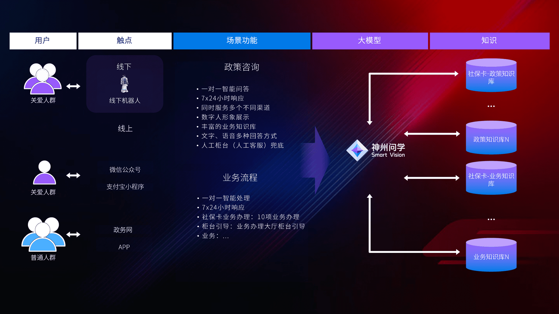 • 线上线下全覆盖:线上提供微信公众号、、、、支付宝小程序、、政务网、、、、app多种渠道,,与线下机器人形成完整服务体系。。。。